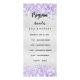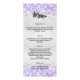 Programa de fiesta de cumpleaños en la parte delantera y menú en la parte trasera. Personalice y agregue un nombre, edad, fecha, programa en la parte delantera y un menú en la parte posterior. Un elegante fondo de imitación plateada, decorado con confetti violeta. Letras de color negro.