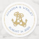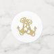 Mesas personalizados de confeti con anclas de oro para un boda. Los confeti de papel vienen en tres tamaños con imágenes / texto en ambos lados. Incluya los nombres de la pareja con la fecha del evento en las piezas más grandes. El resto tiene el diseño de ancla del barco de oro solamente.