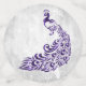 Las mesas están decoradas en el boda o en la ducha de novias con mesa de ducha de tela de púrpura de hoja de pavo real. El diseño de Confetti presenta un fondo gris claro con un pavo real violeta con un embellecimiento de una vid de hojas. También hay material de boda adicional disponible con este diseño.