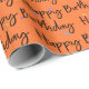 Fun feliz cumpleaños tipo de letra de guión de texto con colorido confeti fiesta en el fondo naranja. Se puede cambiar el color de fondo.