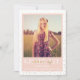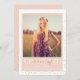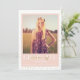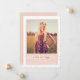 Las capas modernas de confeti dorado detrás de un bloque de color ondulante enmarcando la foto del graduado y detalles de esta invitación de graduación divertida, moda y sofisticada.