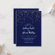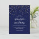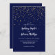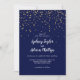 Este Confetti dorado | La invitación a una boda casual de la marina es perfecta para un boda sencillo y elegante. El elegante y caprichoso diseño presenta confeti purpurina de oro falso y caligrafía minimalista sobre la marina con un toque moderno de boho.