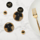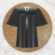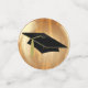 Mesa de graduación temática con gráficos de una gorra de mortero negra, bata de graduación, estrellas doradas y purpurina de imitación dorada. Personalice el año de graduación en el disco de tamaño mediano.