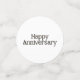 Este artículo presenta las palabras "Feliz Aniversario" en una fuente impresa única con letras doradas y contorno negro. Cada envase contiene 60 piezas impresas en papel semi-brillante estándar de 110 lb de peso con impresión de doble cara a color. Excelente cualquier ocasión desde cumpleaños, bodas, aniversarios y cualquier otro momento hito.