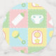 Cuatro cuadrados en suaves pasteles de rosa, verde, azul y amarillo están enmarcados por un diseño blanco como marcas de punto y decorados con adorables iconos de una botella, pañal, ganado y bib con la temática de un bebé. Cada pieza de confeti tiene una zona monográfica en forma de pacificador en la parte posterior, donde se puede personalizar con la inicial del bebé para crear una decoración fiesta verdaderamente única para la ducha de bebé. Este confetti coincidirá con cualquier otro producto de Baby's Quilt para que puedas realizar tu evento de forma fácil y coordinada como quieras.