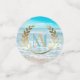 Confetti de la tabla de bodas o eventos de playa | Coincide con la invitación a la boda moderna de un monograma en la playa | Dólar de arena blanca por un lado y por el otro lado Un enfoque lúdico de la tipografía en el texto - con las iniciales de primer nombre Bride y Groom rodeadas por una corona de laurel encima - en dos colores (verde azulado y dorado) - Boda único diseñado para la BarefootBride™ por ©WhimsicalArtwork™