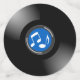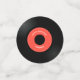 Confetti de la tabla de diseño de registros de vinilo vintage con texto de personalizable (en las etiquetas rojas) y notas musicales extraíbles en las etiquetas azules.