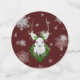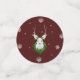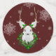 Mesas decorativas y mostradores para las fiestas familiares o de vacaciones con la mesa de renos rojos. El diseño de Confetti incluye un reno festivo con una corona de Navidades adornada con bayas y copos de nieve que caen y una caja de saludo de vacaciones decorada con guirnaldas de vacaciones. También hay artículos de regalo y de vacaciones disponibles con este diseño.