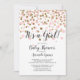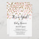 Elegante faux Gold & Pink Confetti Es una invitación Chica para una ducha bebé con tipografía elegante. Invierte nuestra invitación para ver el resultado de la búsqueda para un toque especial. Fácil de personalizar con la información de la ducha.