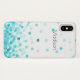 Este elegante Funda de Funda blanco Mate Barely There iPhone X tiene un patrón de confeti azul turquesa claro a brillante con una plantilla de nombre de personalizable para personalizar si lo desea, o puede borrar el nombre si lo prefiere.