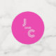Registros de vinilo vintage en tres tamaños para tu disco o boda groovy de los años 70. La parte delantera es una imagen de un registro de vinilo con una etiqueta magenta púrpura. La parte trasera se encuentra en la misma discoteca magenta, muy elegante, y está personalizada en fuentes disco-disco. El tamaño grande incluye sus nombres y la fecha del boda. El pequeño tamaño tiene un monograma. Esta versión está en groovy morado. Puede cambiar fácilmente el color de fondo en la herramienta de diseño.