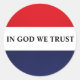 PEGATINAS ROJOS, BLANCOS Y AZULES CON EL LEMA "EN DIOS confiamos". UN LUGAR EN EL QUE SE ENCUENTRA ESTE LEMA ES EN LA PARTE POSTERIOR DE UN PUNTO. PONGAN A ESTOS PEGATINAS EN EL CORREO.
