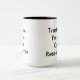 Taza de café personalizada de 444ml. ¡En cuanto a tamaño sólo puedo decir que enorme! pero es lo que esperaba así que estupendo. En el asa me entra la mano entera y no sólo tres dedos como me ocurría con las otras tazas. También comentar que es el tamaño que se ve en las series americanas, tanto para café como para infusión. En cuanto al acabado decir que es correcto, con poco tiempo de uso no puedo especificar mucho más. Pude escoger el nombre y el color pero no la tipografía, quizás esa elección pueda decidir a más gente. En términos generales y por el momento, buena opinión.