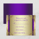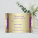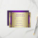Elegantes espirales de oro y púrpura para la confirmación de asistencia a la fiesta de aniversario de bodas de oro. Esta hermosa tarjeta de respuesta en oro y púrpura se personaliza fácilmente añadiendo los detalles de su evento, estilo de fuente, tamaño y color de la fuente, y redacción. Puede elegir el color del reverso -púrpura o dorado- simplemente eliminando el que no desee.
