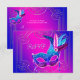 Hermosa confirmación de asistencia a la fiesta de máscara de azul real rosa caliente con máscara de plumas de azul cian precioso, púrpura, rosa caliente y azul real en un fondo magnífico de púrpura y rosa caliente. Esta elegante confirmación de asistencia a la fiesta de máscara de rosa caliente púrpura se personaliza fácilmente para su evento simplemente agregando los detalles de su evento, estilo de letra, tamaño y color de letra, y redacción. Este es un diseño impreso sin purpurina real, plumas, joyas, etc.