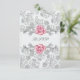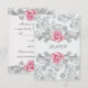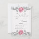 Invitación elegante de confirmación de asistencia de Primera Comunión para niñas con rosa damask y gris plateado. Esta hermosa confirmación de asistencia de primera comunión con rosa y gris plateado se personaliza fácilmente para su evento agregando los detalles del evento, estilo de letra, tamaño y color de la letra, y redacción.
