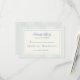 Una tarjeta de confirmación de asistencia formal y elegante que presenta rayas azules estilo preppy como fondo y tipografía elegante y atemporal.