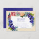Arreglo floral acuarela de flores azul/violeta profundas complementado con flores rojas con un marco rectangular dorado. Parte posterior púrpura profundo. Todo tipo y color de fondo es personalizable.