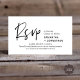 Presentamos nuestra tarjeta de respuesta para boda Modern Elegance: la combinación perfecta de sofisticación y simplicidad. Diseñada para la pareja contemporánea, esta tarjeta de respuesta presenta un guión limpio y minimalista, y un toque sutil de lujo en negro y blanco para confirmar la asistencia de sus invitados. El diseño elegante complementa el tema de boda rosa polvoriento, añadiendo un toque de clase a su suite de papelería. Asegúrese de que su día especial esté meticulosamente planeado con nuestra tarjeta de respuesta elegantemente moderna: un recuerdo atemporal para usted y sus invitados. Diseñado por TeeshaDerrick