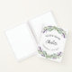 Un elegante fondo blanco decorado con flores de lavanda y vegetación de eucalipto. Personalice y agregue su nombre y texto.