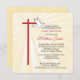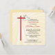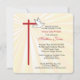 Hermosa tarjeta de invitación para la confirmación de su hijo. Los rayos de oro brillan detrás de una cruz en rojo y una paloma blanca. El rojo es el color de la Confirmación y la paloma simboliza el Espíritu Santo. Personalice el texto para que sea perfecto para sus necesidades de confirmación. Las esquinas de esta tarjeta cuadrada se redondean añadiendo un elemento cohesivo con los bordes redondeados de la cruz.