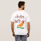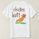 Hee de la camiseta. En un lado dice "conjetura qué?" con mis ilustraciones lindos del pollo y entonces en el otro lado dice, por supuesto, "extremo del pollo." El chiste que nunca consigue viejo. ¿Conjeture por qué? Muslo del pollo.