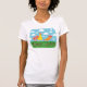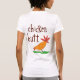 Hee de la camiseta. En un lado dice "conjetura qué?" con mis ilustraciones lindos del pollo y entonces en el otro lado dice, por supuesto, "extremo del pollo." El chiste que nunca consigue viejo. ¿Conjeture por qué? Muslo del pollo.