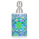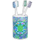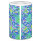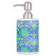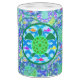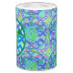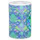 Una tortuga de mar verde con la cáscara modelada, contra un agua azul/un modelo de onda, con varios pescados coloridos. Diseño circular con una frontera verde. Arte de la tortuga de mar.