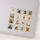 Esta hoja de calcomanías presenta 16 calcomanías de vinilo cortadas individualmente, cada una con una ilustración detallada de un sello postal con forma de Halloween de estilo vintage. Los diseños incluyen una casa embrujada, gato negro, calabaza tallada, muñeca de vudú, fantasma, vampiro, murciélago, cuervo con calabaza, mano esquelética, botella de veneno, búho, espantapájaros, bruja, esqueleto y telaraña. Con tonos suaves e imágenes de estilo vintage, estas calcomanías de sellos postales ofrecen una estética encantadoramente espeluznante ideal para manualidades de temporada, scrapbooking, planificadores, decoración de fiestas o sellos de sobres.