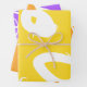 Este conjunto de tres papeles de envoltura está formado por un sistema de puntos y líneas artísticas blancas que dibujan las superficies en amarillo, naranja y lavanda, cada una a su manera.