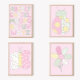 Una combinación de diseños suaves inspirados en colchas y una flor crea esta linda impresión de arte para decorar paredes de dormitorio. El fondo es rosa claro, mientras que la flor está compuesta por blanco con tonos claros de verde, amarillo y rosa. Esta impresión de arte cuenta con una firma mía, la artista.