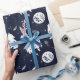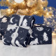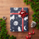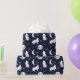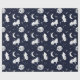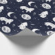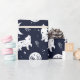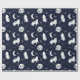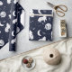 Patrón de adorable cachorro de lobo aullando a la luna con rayas y lunares correspondientes.
