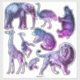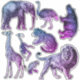 Fantástico conjunto de pegatinas presenta ilustraciones teñidos de azul a púrpura de animales africanos/zoológicos incluyendo elefante, león, hipopótamo y jirafa.