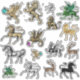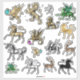 Selección de criaturas míticas y mágicas con aspecto vintage, incluyendo unicornios, dragones y más en una variedad de tamaños y colores. Se pueden utilizar para proyectos de scrapbooking, decoupage, diarios de arte alterado, así como adornos para objetos cotidianos como portátiles y cuadernos.