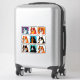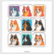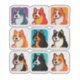 Una colección divertida de siete perros de dibujos animados coloridos como pegatinas recortadas sobre un fondo rosa. Ideal para manualidades infantiles, proyectos escolares, álbumes de recortes y marca divertida para productos relacionados con mascotas.