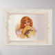 Niño victoriano con gorra acentuado por la flor de bonito. Cara dulce y pelo de quemadura rizada. El fondo es un damasco de marfil suave. Ilustracion infantil vintage de Frances Brundage. Una encantadora colección de cosechas.