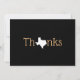 Agradece a amigos y familiares con esta tarjeta de agradecimiento que presenta la forma de Texas como la "a" en Agradecimientos. Esta tarjeta se puede utilizar en muchas ocasiones para decir gracias por regalos o ayuda.