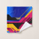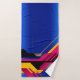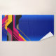 Con sus líneas amarillas, rosas, negras y grises sobre el fondo del degradado azul, esta elegante toalla geométrica aporta al lugar un toque de modernidad.