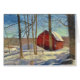 Esta tarjeta de nota presenta un paisaje de Connecticut luego de una tormenta de invierno. A la izquierda del granero rojo hay un arándano.