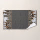 Una toalla de baño rústica determinada perfecciona para una cabina en las maderas o la otra decoración del país. La toalla de mano ofrece una imagen que tomé de ciervos de la cola blanca en las maderas pronto después de una nueva nieve en un fondo oscuro con los conos del pino. La toalla de baño y el washcloth de coordinación es el mismo fondo oscuro con conos del pino y una frontera a juego del modelo del diamante.