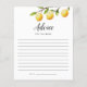 Rústica temática de limón nupcial tarjetas de consejo de boda con ilustracion acuarela de limones en una rama de árbol. Pide a los clientes que rellenen esta tarjeta durante la ducha. ¡Será un gran placer!