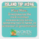 "Consejo de la isla #246: Juega bien. Todo el mundo en la roca es alguien que conoces, alguien que necesitarás, o alguien en el gobierno". Personaliza todo tu equipo con humor de la vida de la isla - o póngalo alrededor de tu roca para difundir algo de ligereza. ¿Quieres escuchar más sobre la vida rock en toda su excéntrica gloria? Ven a reírte con nosotros en www.womenwholiveonrocks.com - ¡te ves donde hace sol!