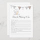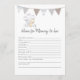 Un juego divertido para el fiesta de revelar sexo es el juego Consejos para la futura mamá. Este juego tiene una pancarta gris y marrón plateado en la parte superior y un elefante bebé abrazando a un perro canto. Al revés hay un elefante bebé sonriendo con su baúl levantado hacia arriba con plantillas.