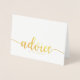 El Consejo de Relieve metalizado dorado para la tarjeta de felicitación de recién casados es perfecto para cada uno de sus huéspedes que acudan a su boda. Las palabras "Consejos para los recién casados" son Relieve metalizado real impreso/grabado en el papel y es suave hasta el tacto. Personalizar el texto interior con el mensaje deseado o quita para que esté en blanco y para poder escribir a mano tu propio mensaje.