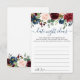 Tarjeta de Consejos de Idea Noche Floral Floral Floral Bridal de la Marina de Borgoña Azul Rubor Floral Bridal Shower.