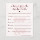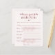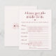 Agrega un toque significativo y memorable a tu celebración con esta tarjeta "Consejos para la Novia" boho floral. Diseñada con suaves acentos botánicos y tipografía moderna, invita a los invitados a compartir consejos, deseos y consejos de matrimonio sinceros para la futura novia. Perfecta para las fiestas de despedida de soltera, esta elegante tarjeta se convierte en un recuerdo que la novia puede atesorar mucho después de la celebración, llena de amor, sabiduría y mensajes reflexivos de familiares y amigos.