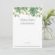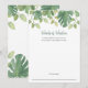 Estas elegantes y modernas tarjetas de consejo para la ducha de novias cuentan con monastera acuática, higo de hoja de hilo y hojas de vid de pothos en verde sobre un sencillo fondo blanco. También se presenta un guión moderno escrito a mano en verde.