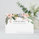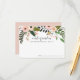 Elegantes tarjetas de consejo floral permiten a los invitados de las duchas de novias compartir sus palabras favoritas de sabiduría para que la novia esté. Las tarjetas cuentan con un borde superior de flores rosa y melocotón decoradas con exuberante vegetación botánica. "Palabras de sabiduría para la futura Sra. [Nombre]" aparece en la escritura moderna de caligrafía escrita a mano.