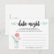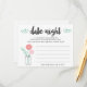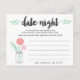 Nuestra fresca toma del tarro de la noche de la cita permite a los invitados de la ducha de novia compartir sus ideas favoritas de la noche de la cita para la pareja feliz. El diseño presenta un tarro de albañil lleno de flores de melocotón y rosado, y un brote de hojas botánicas verdes de menta, con "noche de cita" en tipografía de pinceles negros. Las tarjetas son fácilmente personalizables con el nombre de la pareja, el nombre de la novia y la fecha de la ducha. Coloque una pila en la entrada del evento, párela o deje una en cada lugar. Hace de la novia un bizcocho hermoso y una gran alternativa para las novias que quieren algo un poco diferente de los juegos habituales.