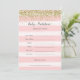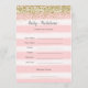 Tarjeta de predicciones para bebés con diseño falso de purpurina dorado y fondo de color de las franjas rosadas.